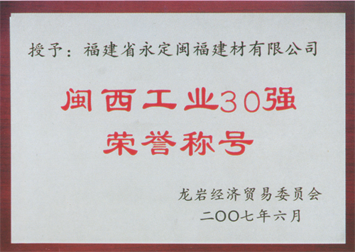 閩西工業(yè)30強(qiáng)榮譽(yù)稱(chēng)號(hào)
